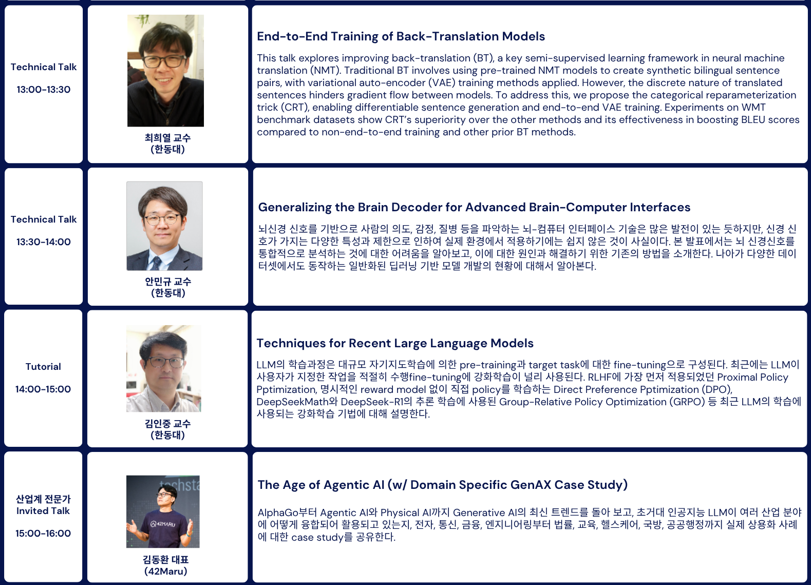 Technical Talk: 홍참길 교수, 남재창 교수, 최희열 교수, 안민규 교수